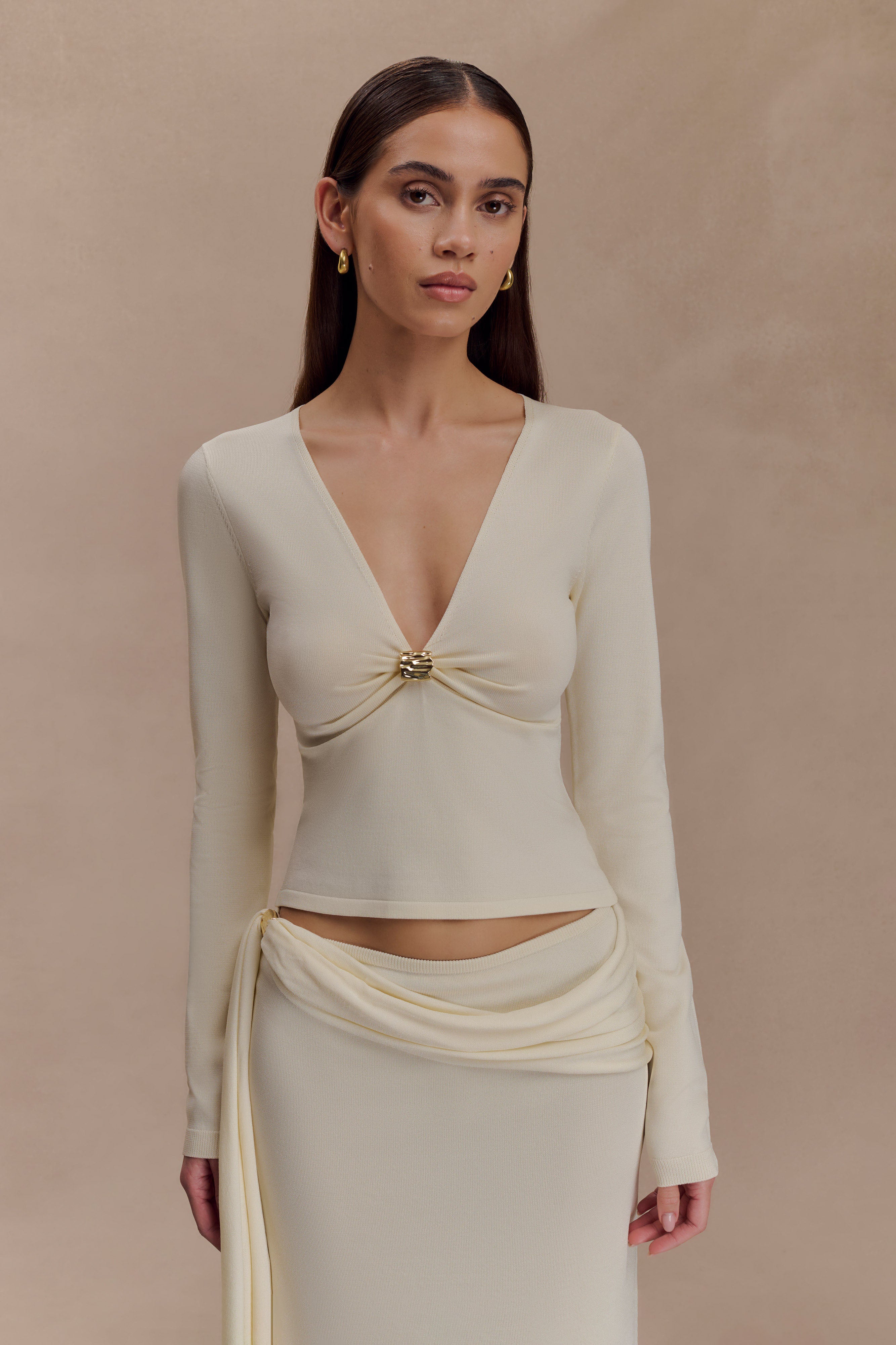 Miraby Front Ruched Knit Long Sleeve Top - Ivory